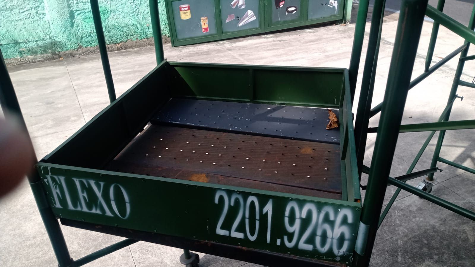 – **Portinhola de Acesso**: Inclui uma lateral com portinhola e trincos, facilitando o acesso à plataforma de trabalho.