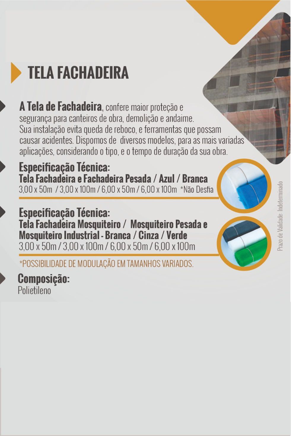 Com a Tela Mosquiteiro Pesada da Flexo Andaimes, você investe em qualidade e proteção, assegurando um ambiente mais saudável e agradável. Não deixe que os insetos interfiram na sua rotina; adquira já a sua!